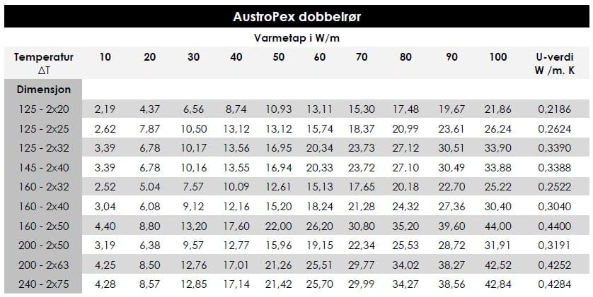 Fleksibelt forisolert og selvkompenserende dobbelrør egnet for bruk som fjernvarmerør i sentralvarmesystemer. Korrosjonssikkert mediumrør laget av tverrbundet PE-Xa i henhold til DIN 16892/93, med rød oksygendiffusjonsbarriere EVOH i henhold til DIN 4726
